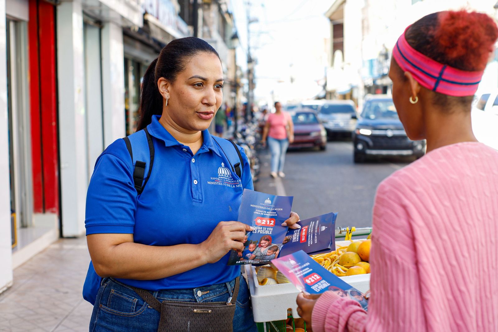 Santiago. El Ministerio de la Mujer, por quinto año consecutivo, realiza las jornadas Puerta a Puerta “Vivir sin Violencia es Posible”, con el objetivo de contribuir a la sensibilización y orientación de la sociedad dominicana en materia de prevención de la violencia contra la mujer e intrafamiliar, la promoción de una cultura de paz y la difusión de los servicios de prevención y atención a la violencia.