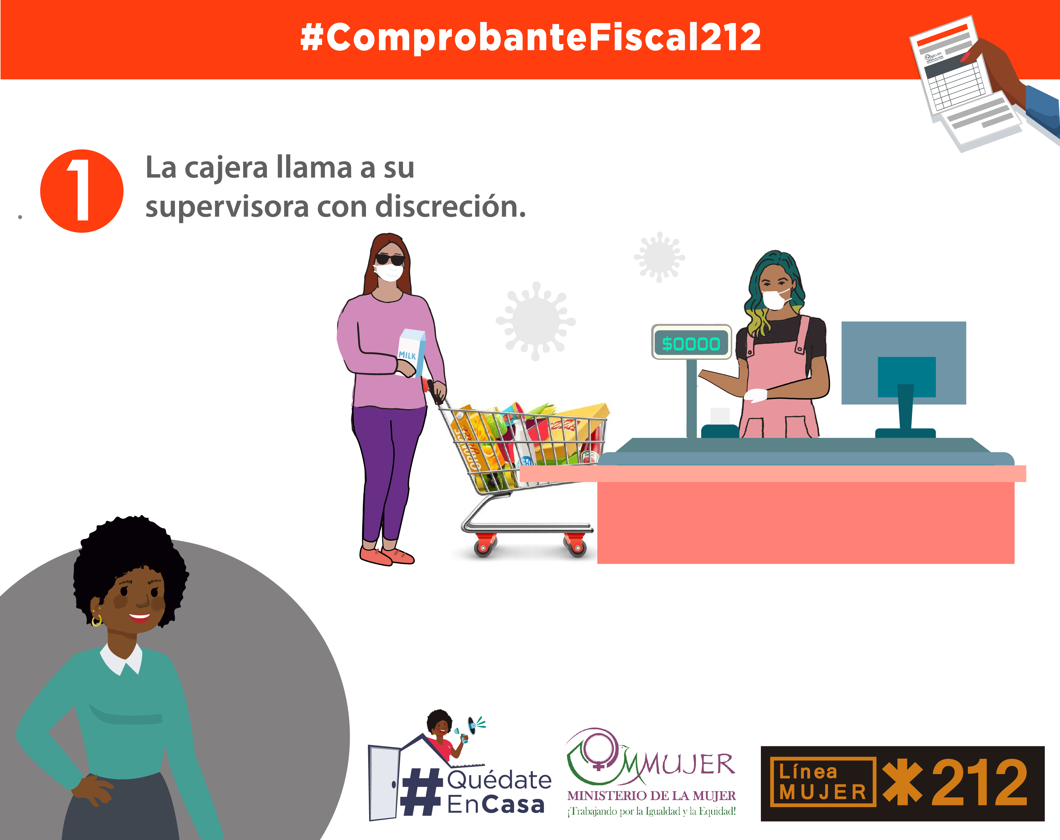 Mediante Comprobante Fiscal 212, desde ya las mujeres solo tendrán que indicar a la cajera de Sirena, Pola y Aprezio que requieren este documento, e incluso, si solo dicen 212, de inmediato la cajera llama a personal de supervisión, que acompañará a la usuaria a un lugar reservado para que ella misma llame a la Línea Mujer *212.